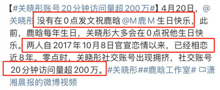 2025年4月鹿晗诞辰,关晓彤冲破衔尾7年的卡点祝贺老例;
