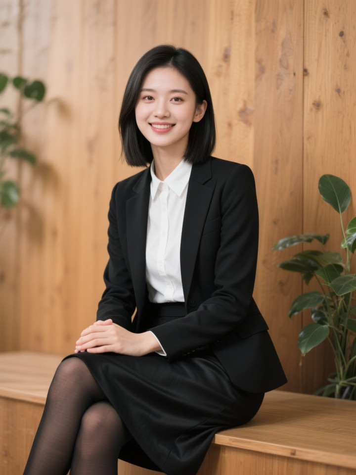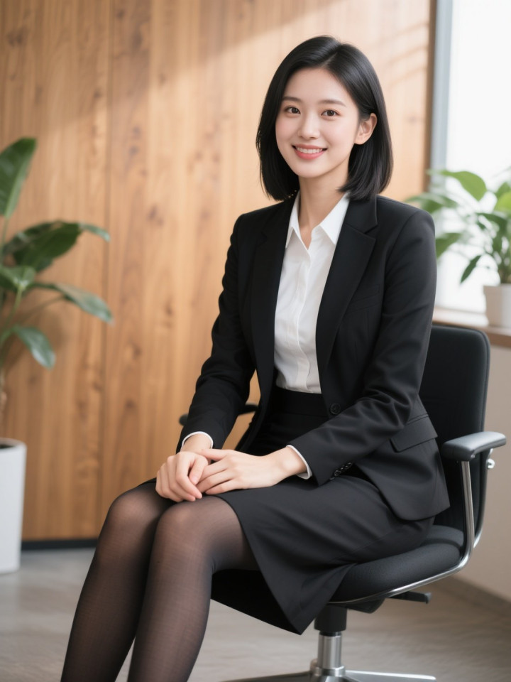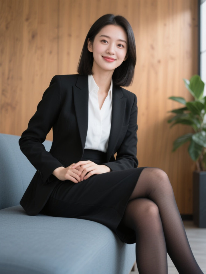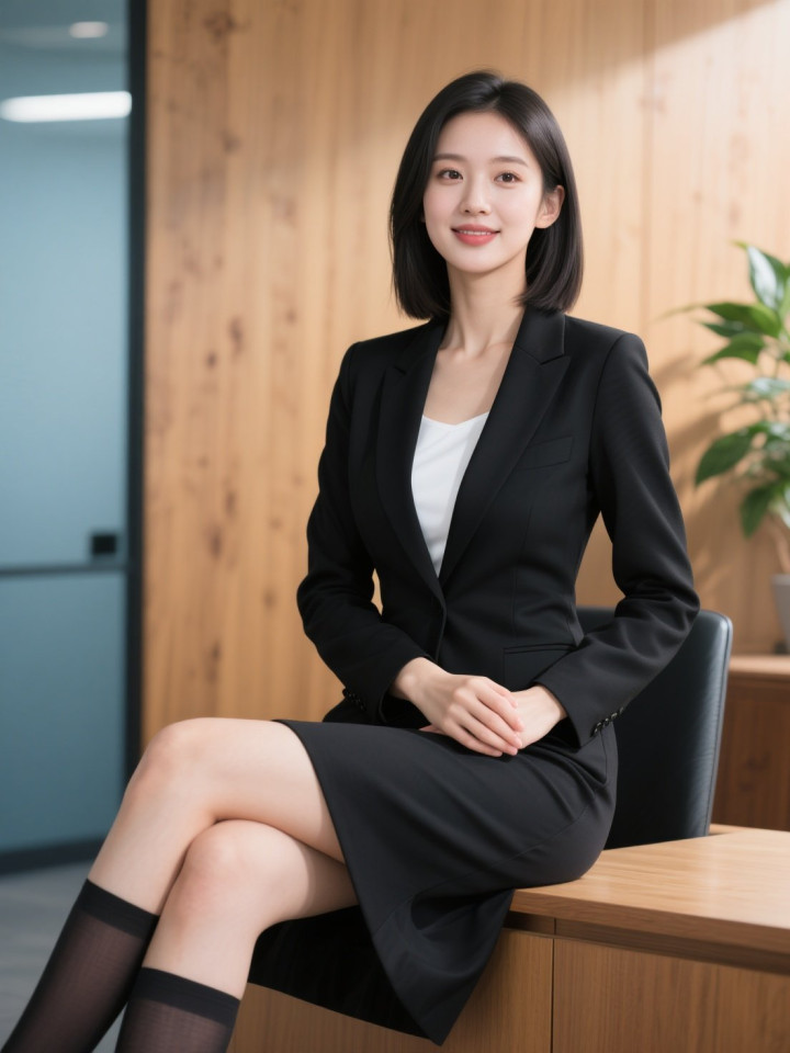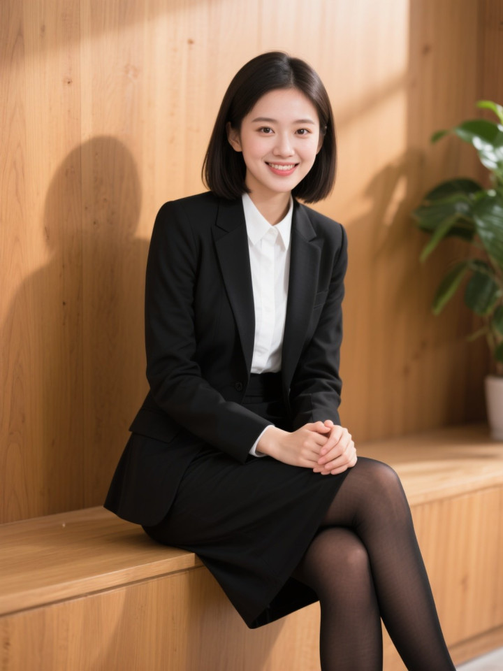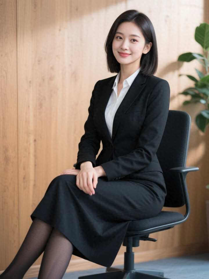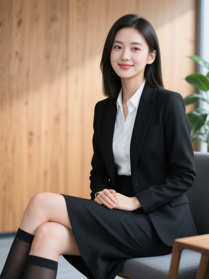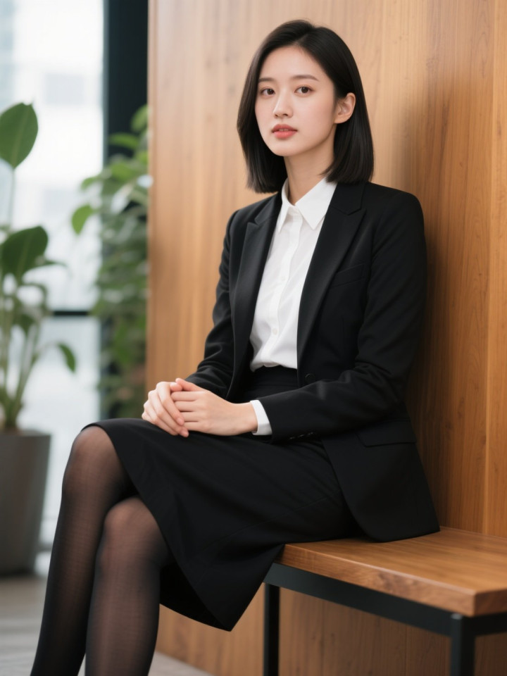 开云sports 光影下穿玄色西服套裙的做事女性