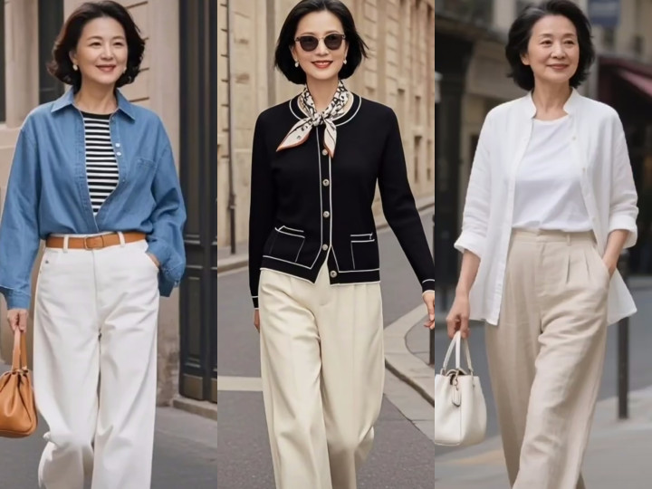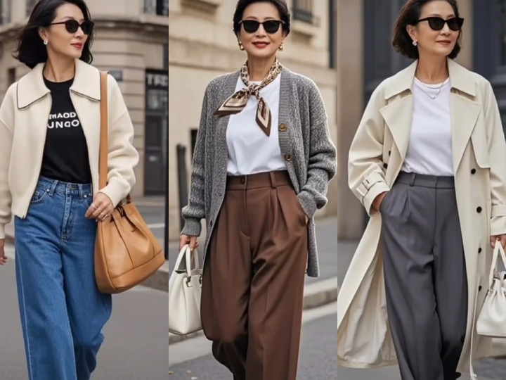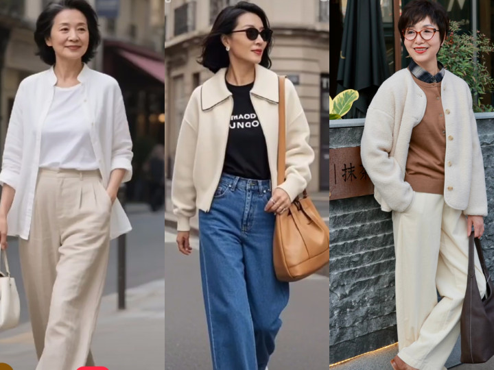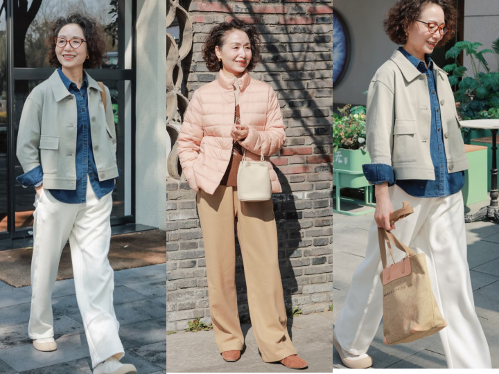 基础色系是50+女性早春绝佳选拔,不挑肤色和现象,松弛搭配皆顺眼不出错,检朴又高档。比如米色、浅灰、卡其色等,简易提亮肤色,显白显气质。