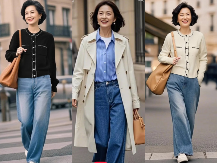牛仔裤是早春季节常穿的下装,要是50+姐妹念念要穿出年青感,提议选拔小白鞋或德训鞋搭配。鞋子作风与裤子呼应,举座呈现出和谐一致的好意思感,顺眼端淑又失业减龄。