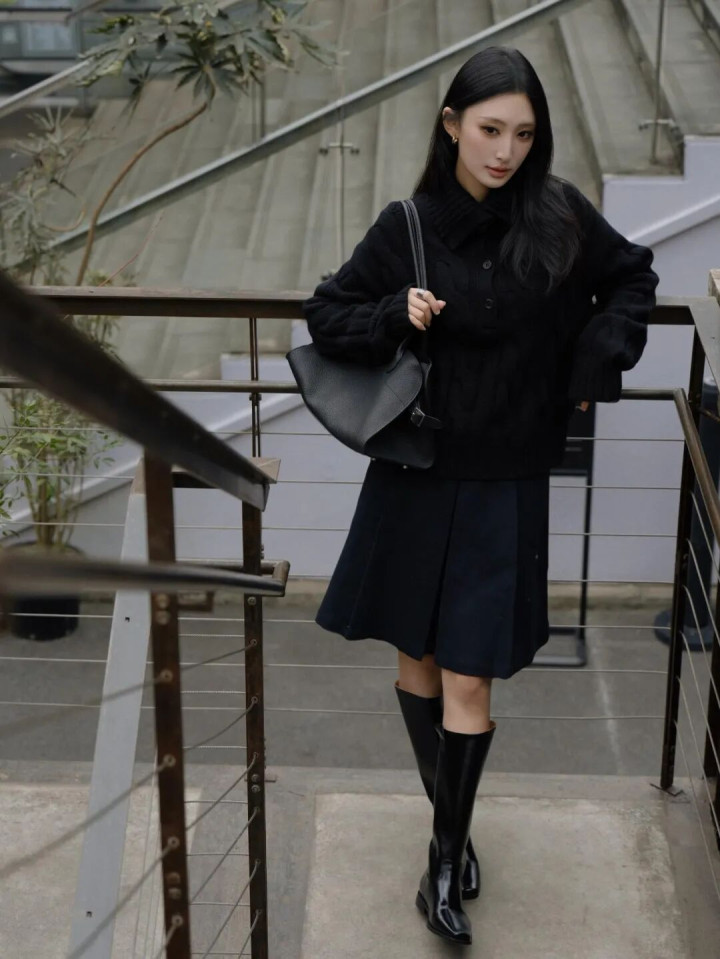 开云体育官方网站 皮靴和高领针织太配了