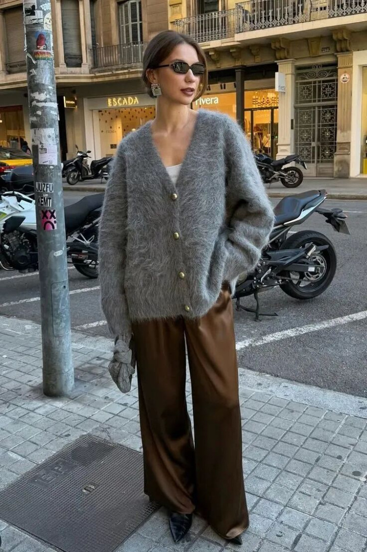 尤其这件我偏疼的灰色毛衣,它不是那种暮气千里千里的铅灰,而是带点暖调的烟灰,像秋日午后斜照进窗棂的光。
