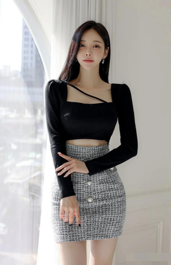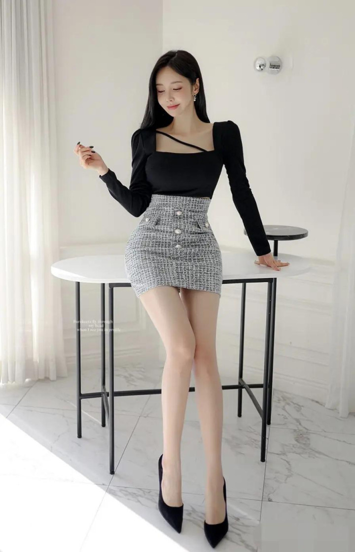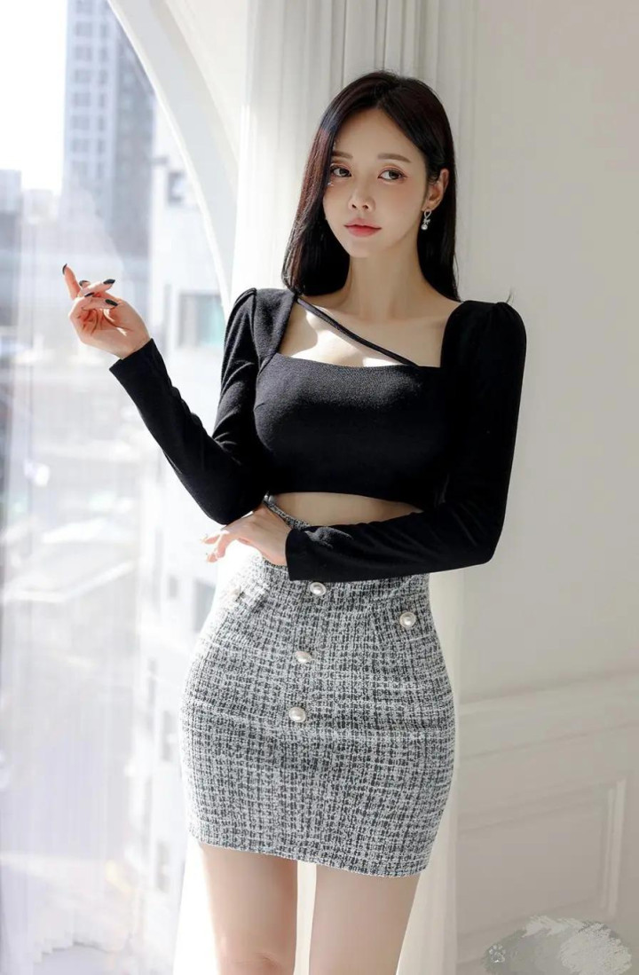 开云体育 韩式轻熟风穿搭, 粗花呢半裙+镂空上衣好意思到犯规