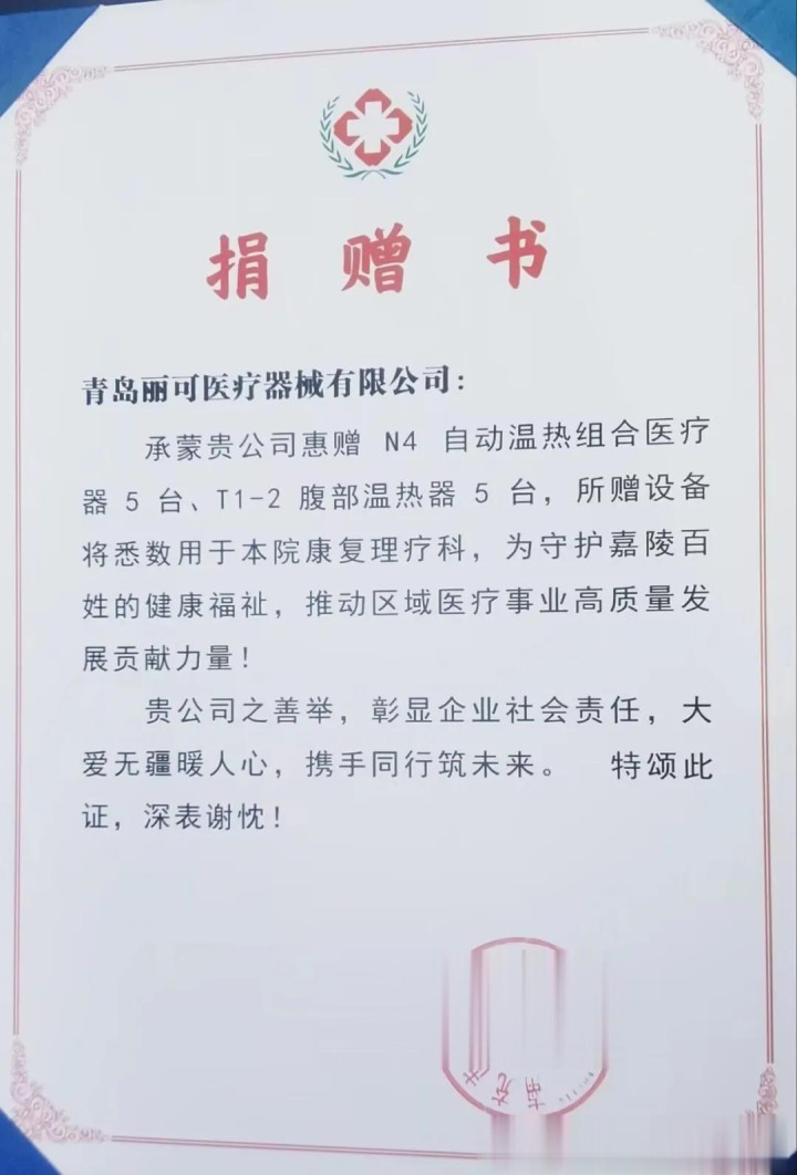 今儿个向我们南充嘉陵中病院方面伸出扶持的青岛丽可医疗器械有限公司,是2002年竖立的正规韩资企业,深耕温热理疗规模二十余年,领有国度招供的医疗器械出产、相关双重正当禀赋,实力与口碑兼具。