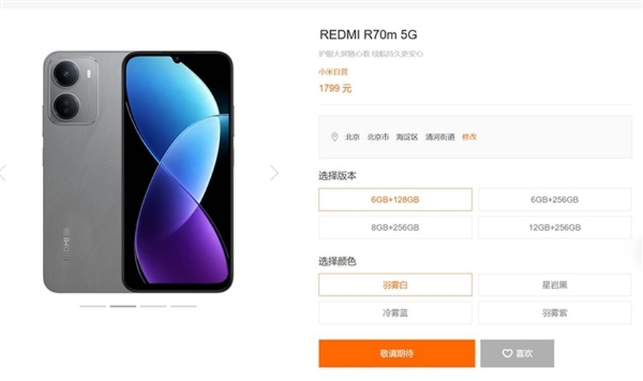 小米商城认真上架REDMI R70m新机,起售价1799元,定位实用型初学级5G机型,主打超长续航与大屏体验,兼顾性价比与实用性,面向详确日常使用体验的平素破钞者,现在该机已在商城开启展示,暂未开售,披露为“敬请期待”景色。