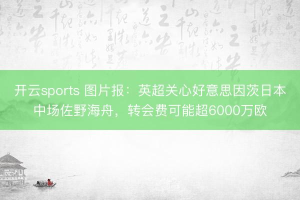 开云sports 图片报:英超关心好意思因茨日本中场佐野海舟,转会费可能超6000万欧