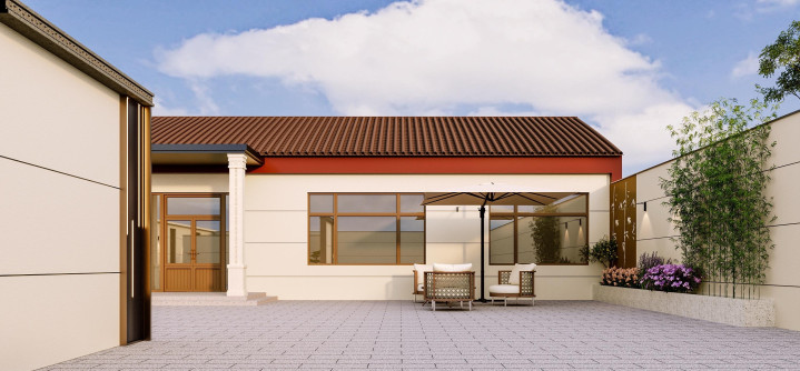 开云体育官方网站 自建房,简便的前后庭院谋略成果图