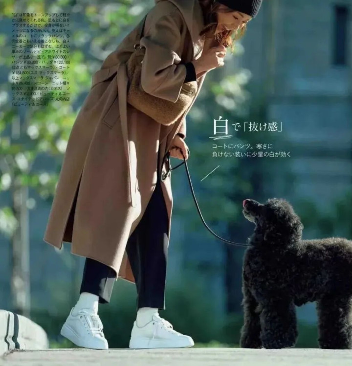 你看那黎明街角走过的女子,长身玉立,一件驼色大衣随风轻扬,眼下一对小白鞋,干净得像没沾过尘。