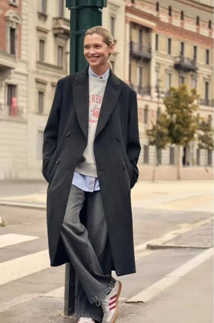 一件剪裁利落的大衣,配一对全能小白鞋,便足以讲完总共冬天的故事。
