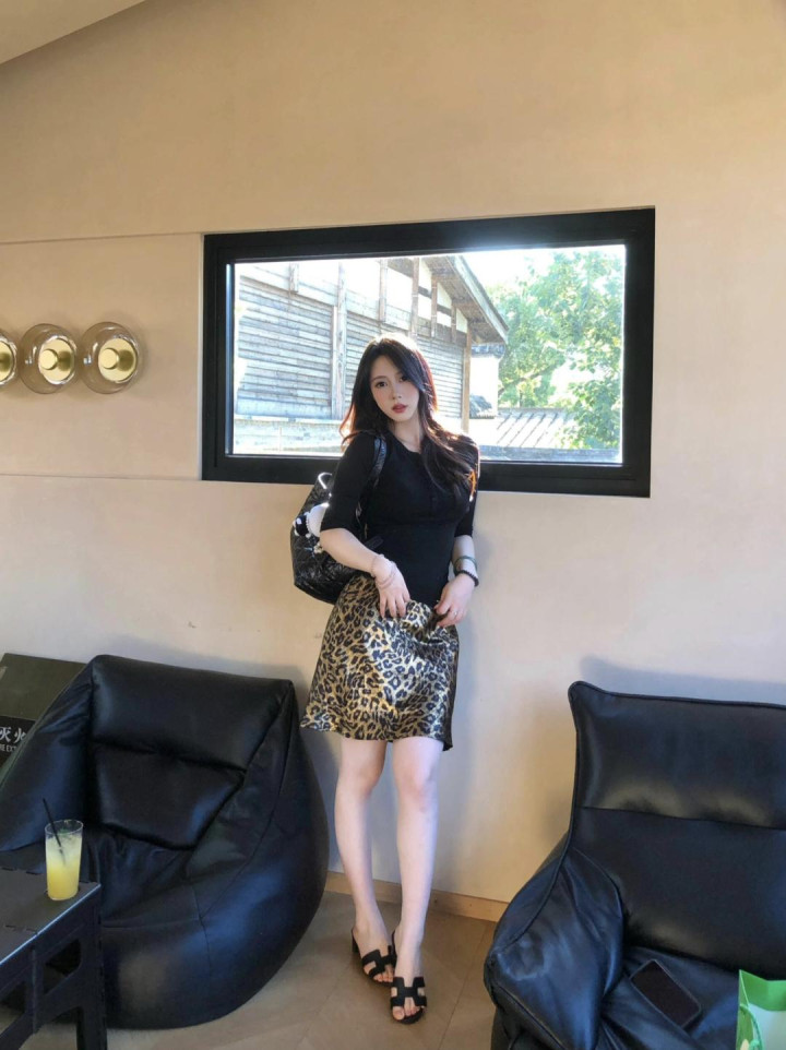 开云sports 黑上衣 + 豹纹短裙 + 粗跟凉鞋, 辣妹出街王炸组合, 颜值平直翻倍