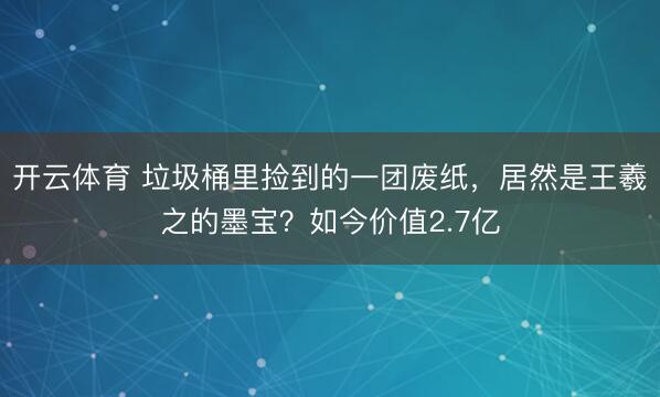 开云体育 垃圾桶里捡到的一团废纸,居然是王羲之的墨宝?如今价值2.7亿