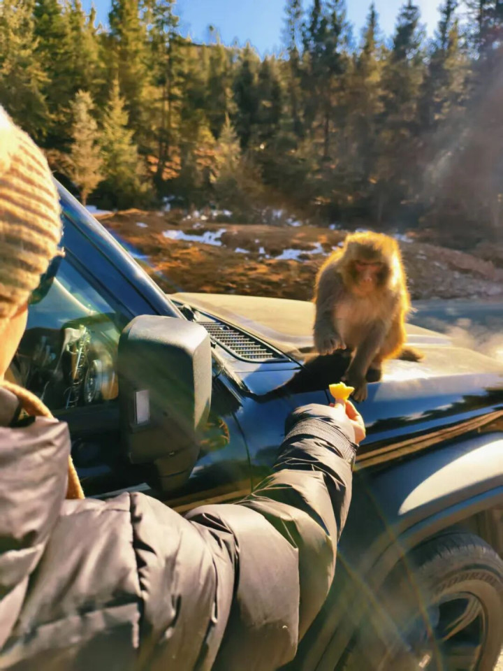 不雅猴点:不雅景台无猴群别失望,往下开10分钟路边有野生猴群,免费投喂