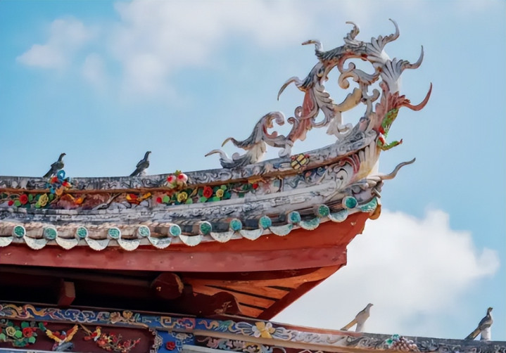 燕尾脊的营造,更有其严谨法式。“鼎盖脊”“花窗脊”等正脊形制虽为定式,但结巴细节却荫庇品级:素面朝天者,多为寻常民居;结巴祥云、牡丹等灰塑图案的,常见于望族官邸;若夫祠堂寺院,则极尽剪瓷雕、交趾陶等斑斓工艺,瑞兽、东谈主物、花草跃然脊上,每一派瓦、每一抹彩,皆凝铸着闽南工匠的心血与灵性。