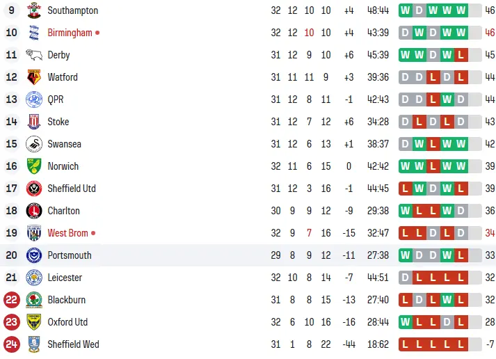 而本场输球后,莱斯特城当今和左迁区的布莱克本同积32分。莱斯特城还比布莱克本多踢1场,保级格局相配严峻。