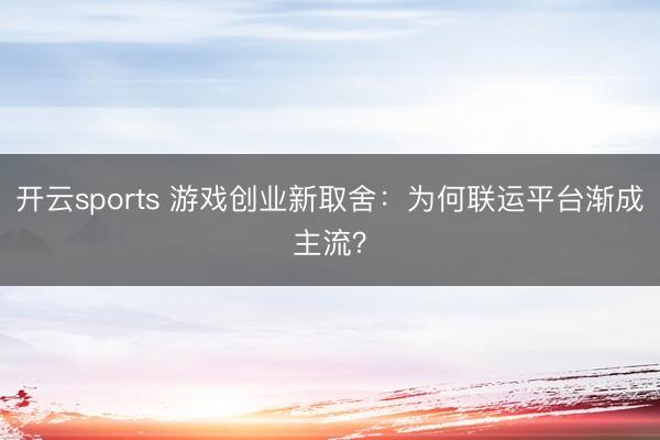 开云sports 游戏创业新取舍:为何联运平台渐成主流?