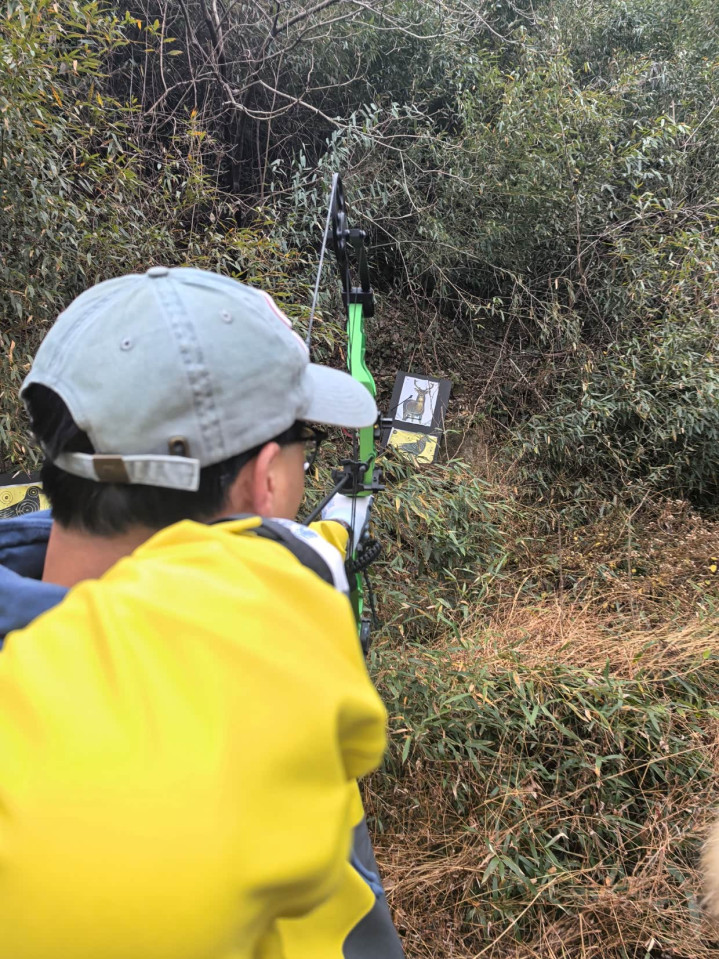 进到林间深处,找到几个事先设定好的靶点,一通乱射,果然也中了好几箭呢!
