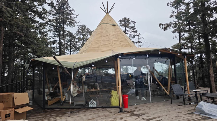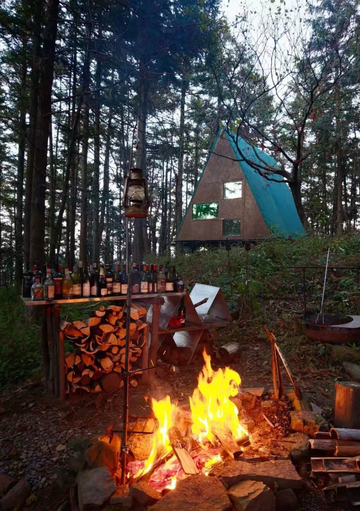 莫干山离上海不远,3小时控制即可抵达山上的营地。看着这满地的木头,冬日露营的feel就来了!