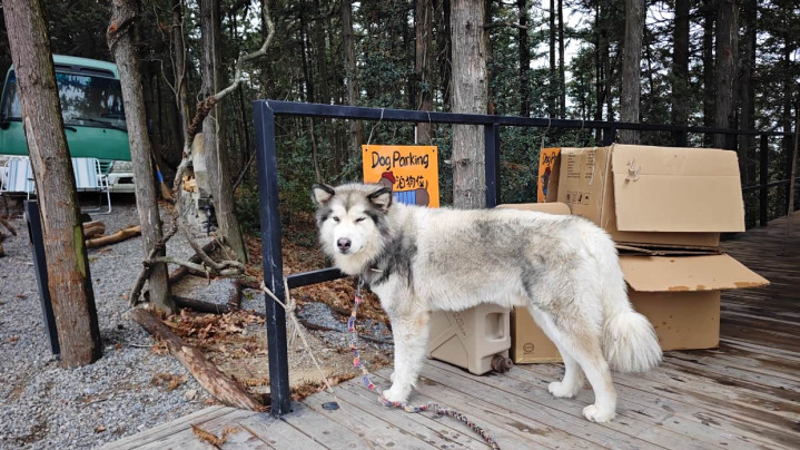 门口还有几个泊狗位,确切认真!这只阿拉斯加是雇主自家养的,可乖顺了!率性撸!