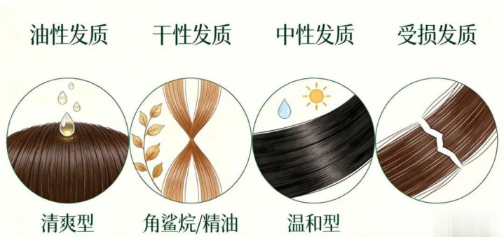 干性发质:干性发质毛鳞片脆弱,易干枯分叉,提议选含角鲨烷、植物精油等保湿身分的染发剂,染发前可在发梢涂少许护发油,减少毁伤。