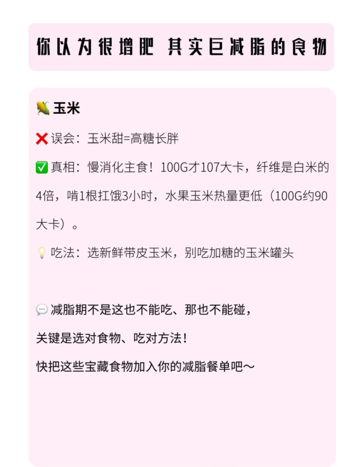 和馒头、红薯雷同,玉米也常被减肥的东说念主歪曲,以为它是碳水,吃了会胖,其实它是减肥期最友好的主食之一。