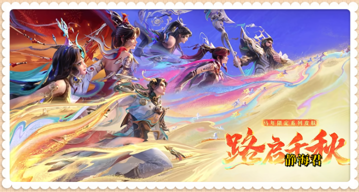 神骥踏长风,丝路启千秋。王者荣耀马年为止皮肤《路启千秋》,以「丝绸之路」为主题,从古代西域、西南、海上等丝绸之路中寻找灵感,完成了历史科普的同期,还请安了那条伟大的说念路在不同的时光与地域里的细腻无比华彩。