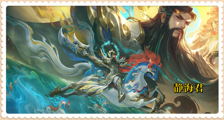 玄色长发以华冠束起,神性感透彻;肩甲参考闽南红砖厝设立,远不雅如厝顶,肩负起远航者对家乡的想念;死后则是金玉材质的神骥与波涛图腾构成的神轮,尊严又大气;举座配色以瓷白为主、海蓝为辅,正人气度透彻;控制再以流云纹、水波纹作念修饰,进一步展现出海丝的茁壮和关羽的高贵。