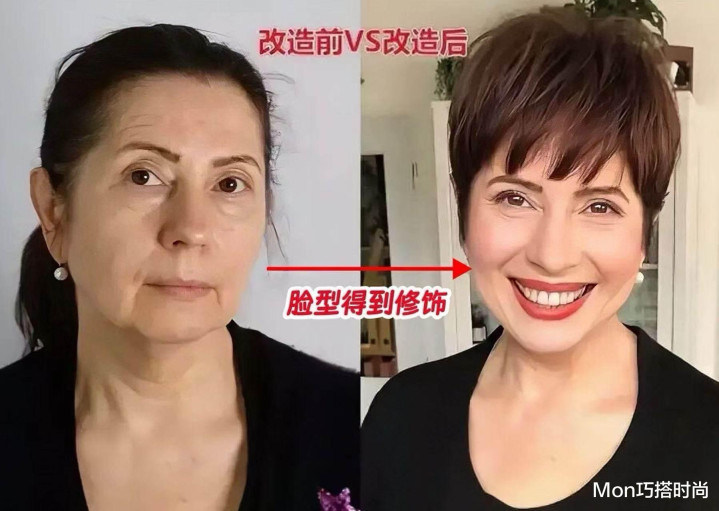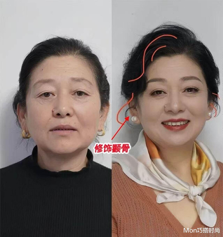 发型选对了,妆容也不成掉下,毕竟换发型并不成达到换头的恶果,搭配细致的妆容,才能遮蔽我们面部的短处,提高通盘这个词东谈主的气场,窜改你的气质;就像底下这个大姨,将头发扎起来,画上裸妆显得气色好,须臾就逆龄10岁。