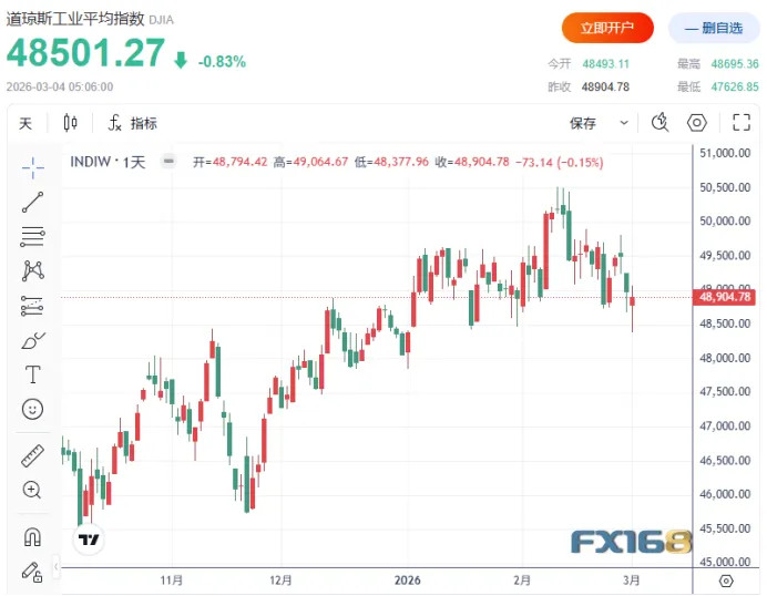 3月3日晚间,好意思股领先拉开暴跌序幕,三大指数集体跳水;谈指盘中一度暴跌超1200点,犹如一艘在暴风暴雨中失去领域的巨轮,摇摇欲坠;纳指盘中最大跌幅达2.74%,标普500指数也未能避免,三大指数盘中均一度暴跌超2%,虽随后跌幅有所收窄,领域收盘谈指仍跌0.83%,纳指跌1.02%,标普500指数跌0.94%。