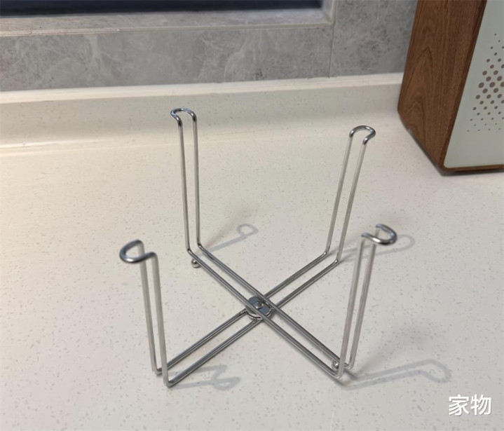 其实它即是个大致式的、径直套垃圾袋的折叠垃圾夹,无用的时辰苟且塞到厨房的抽屉柜格里,用到的时辰拿出来放在台面上,也十足不占空间,偶尔当个杯子碗碟沥水架也OK,相等实用。