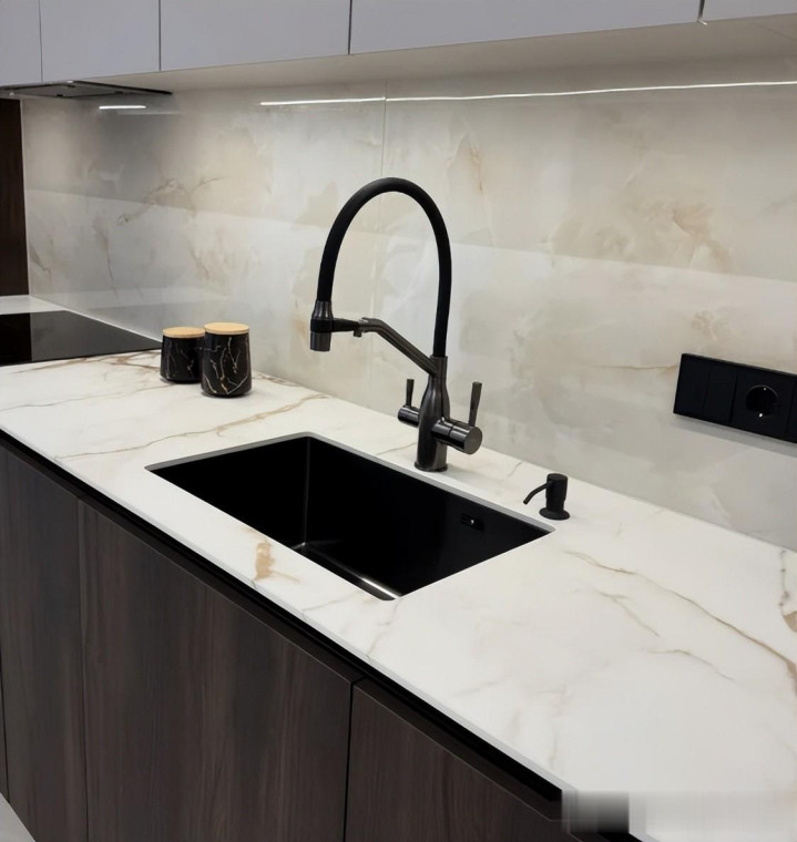我家厨房台面,作念的是岩板材质的。