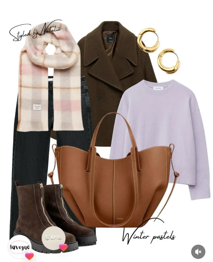 淌若你更爱带点柔媚的女东说念主味穿搭,就选浅紫色毛衣吧,尤其相宜搭配深棕色大衣,能坐窝把颓落深色调穿出天真感。