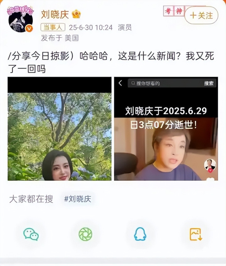 靠近此次的空话,刘晓庆也没太当回事,仅仅置顶了以往的辟谣动态,配文“我又死了一趟吗?”,用一种收缩幽默的面目,化解了这场窘态。